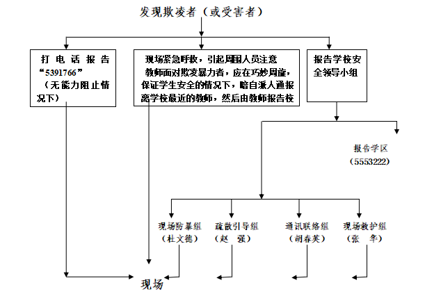 组长接到通知后✿★★,迅速赶赴现场✿★★,同时拨打“110”(情况危急且不受控制的情况下)✿★★。通知警察(迅速前往现场阻止)✿★★,与此同时✿★★,安全组长一面迅速召集最近的教师(最好是男教师)赶赴现场✿★★,阻止欺凌者施暴✿★★,一面通知现场安全组组长前往现场✿★★。6.